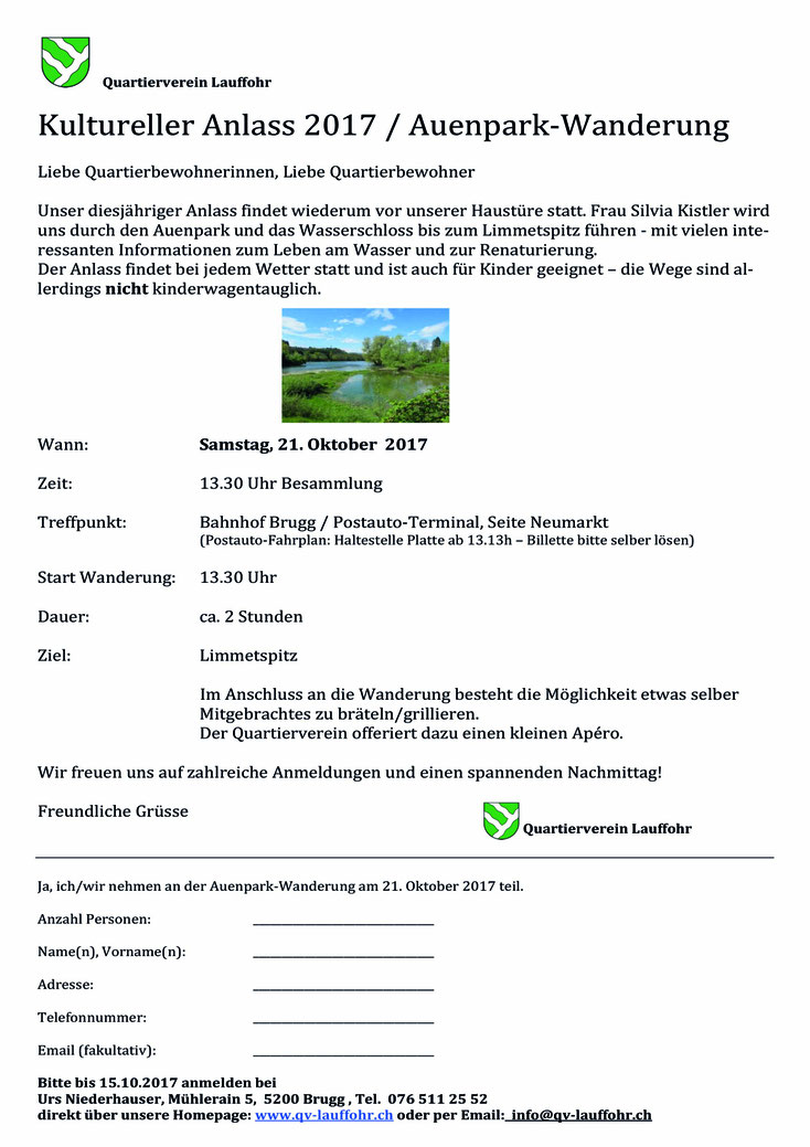 Bei schönem Wetter trafen sich einige Quartiervereinsmitglieder zur Auenparkwanderung.